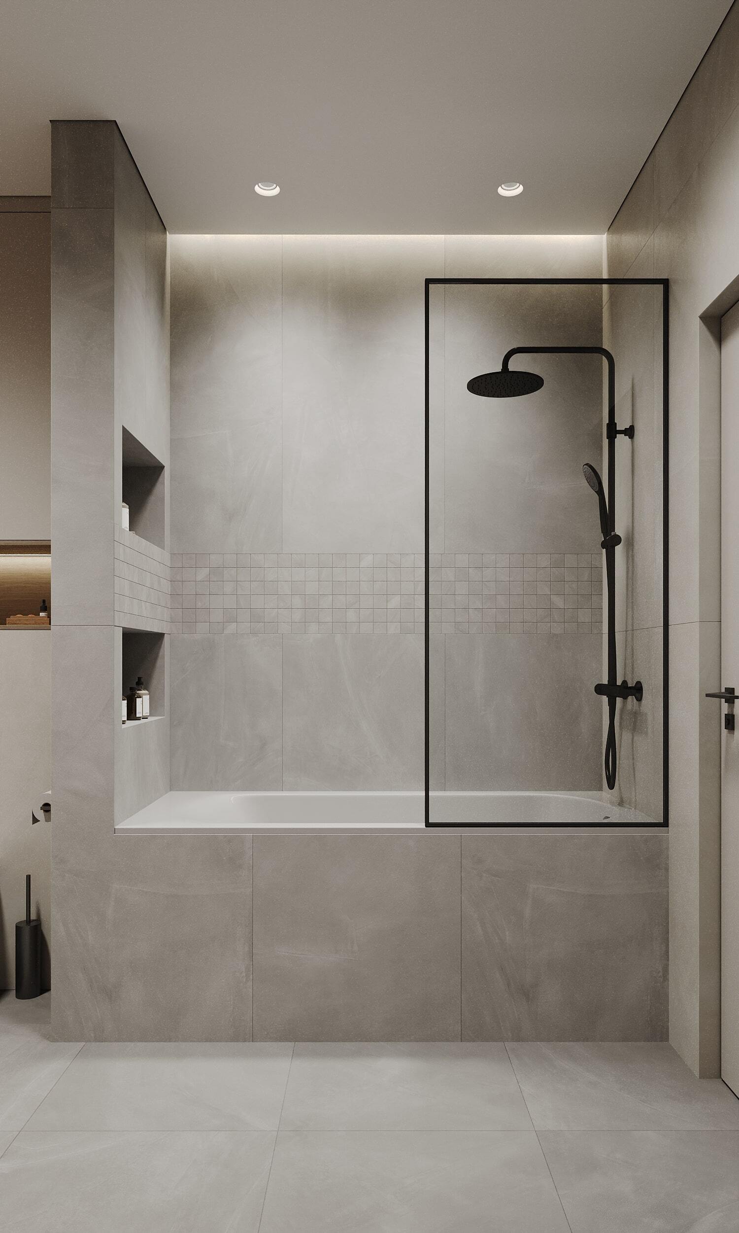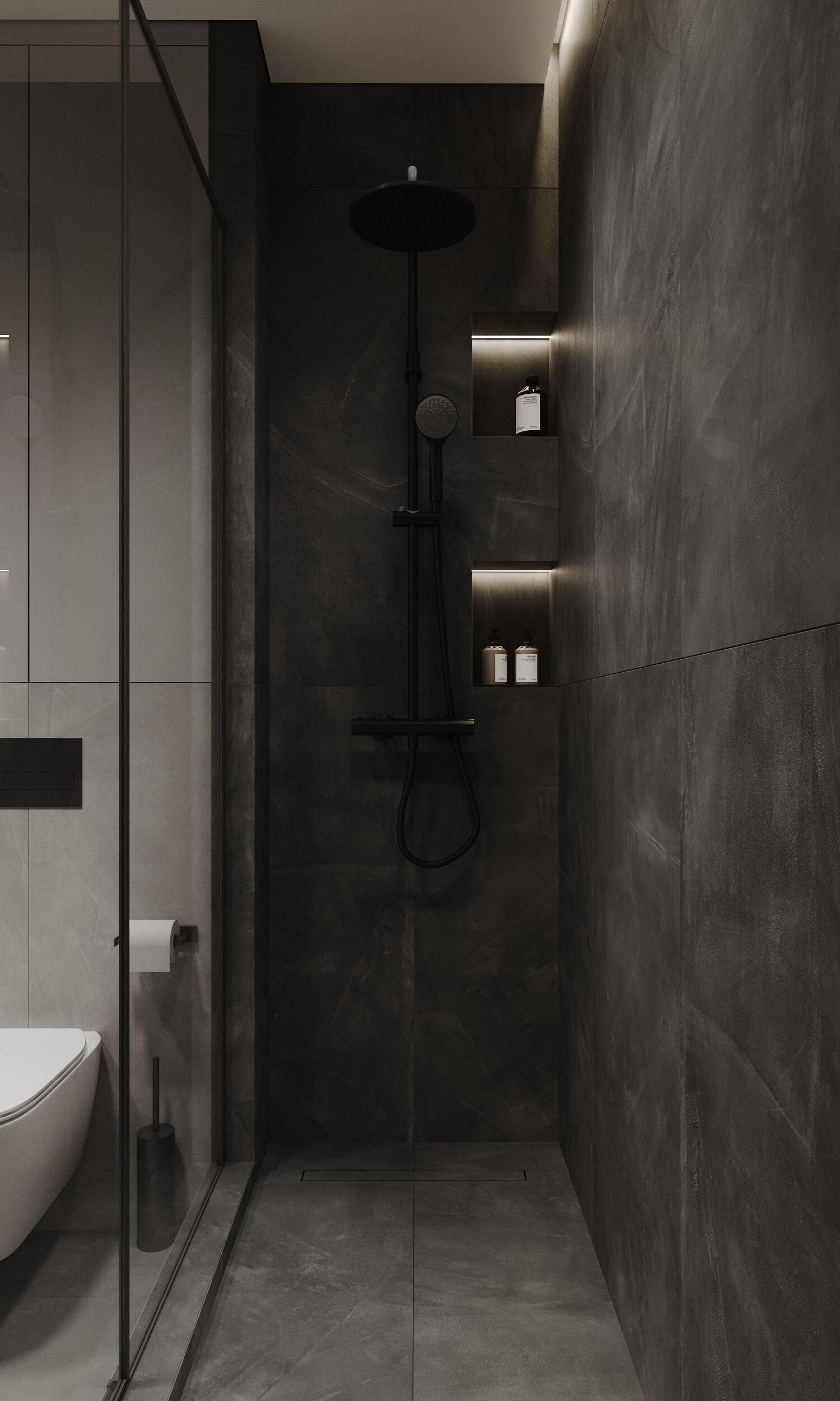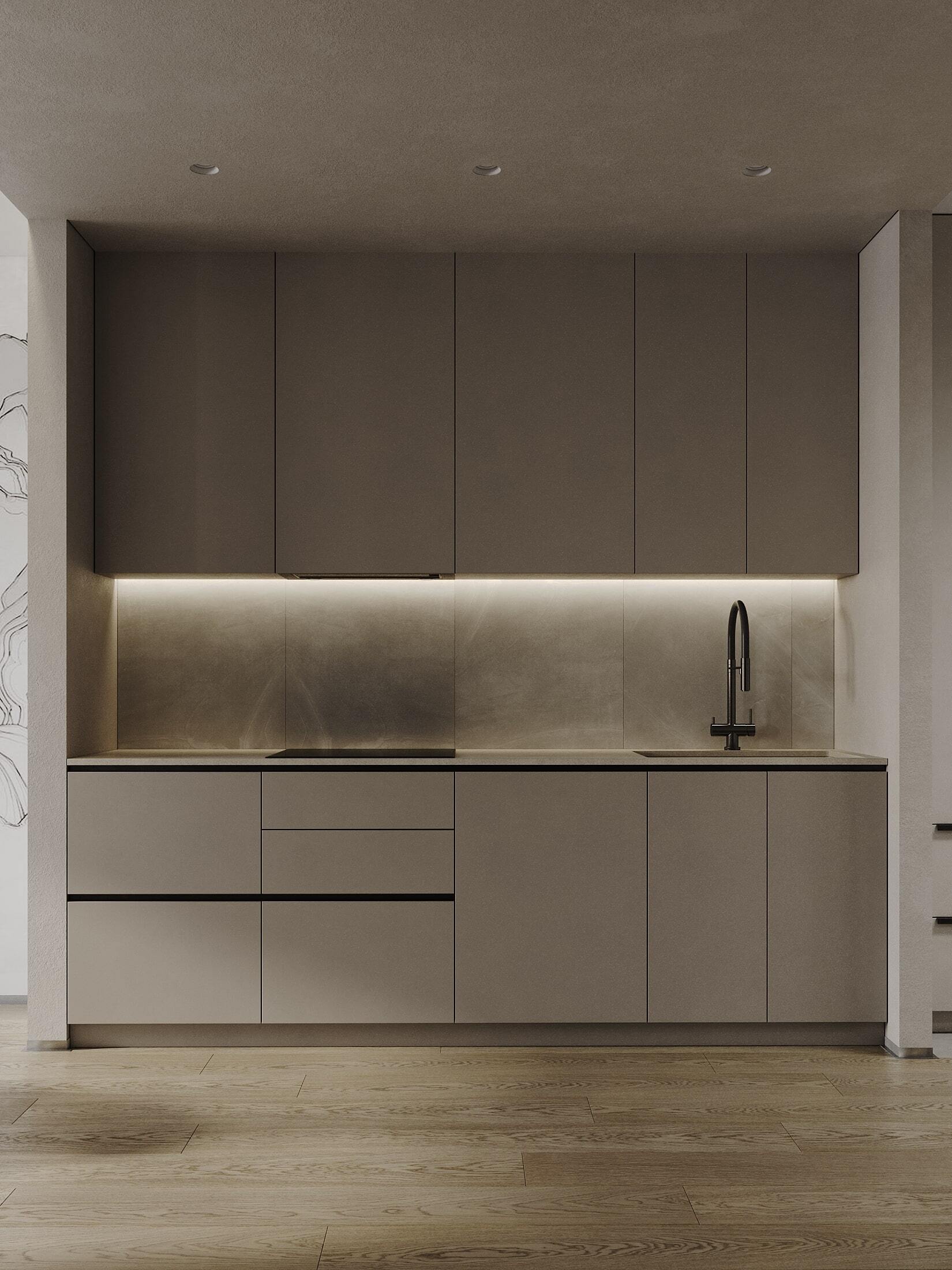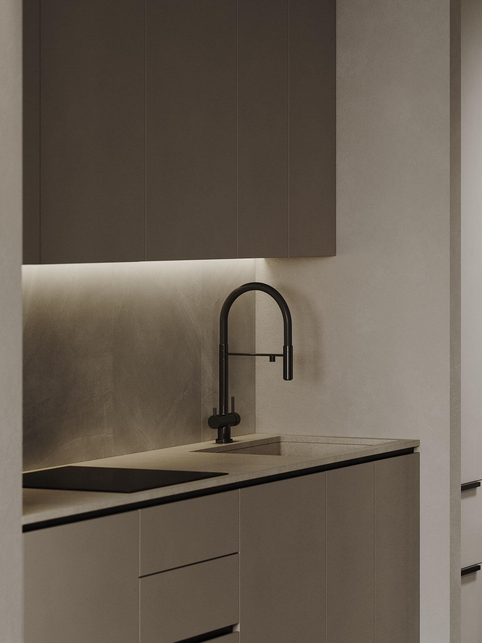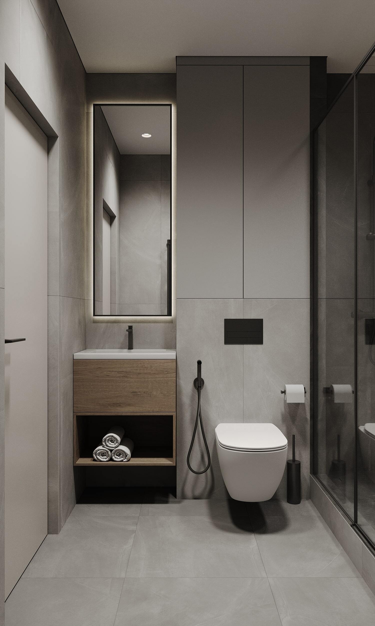 Просторная кухня-гостиная, с удачно вписанной в пространство несущей колонной, кухня, замкнутая в нишах и выделенная опуском потолка, отдельная столовая зона с акцентным светильником, большой вместительный диван для всех членов семьи. 2 санузла и отдельная постирочная.