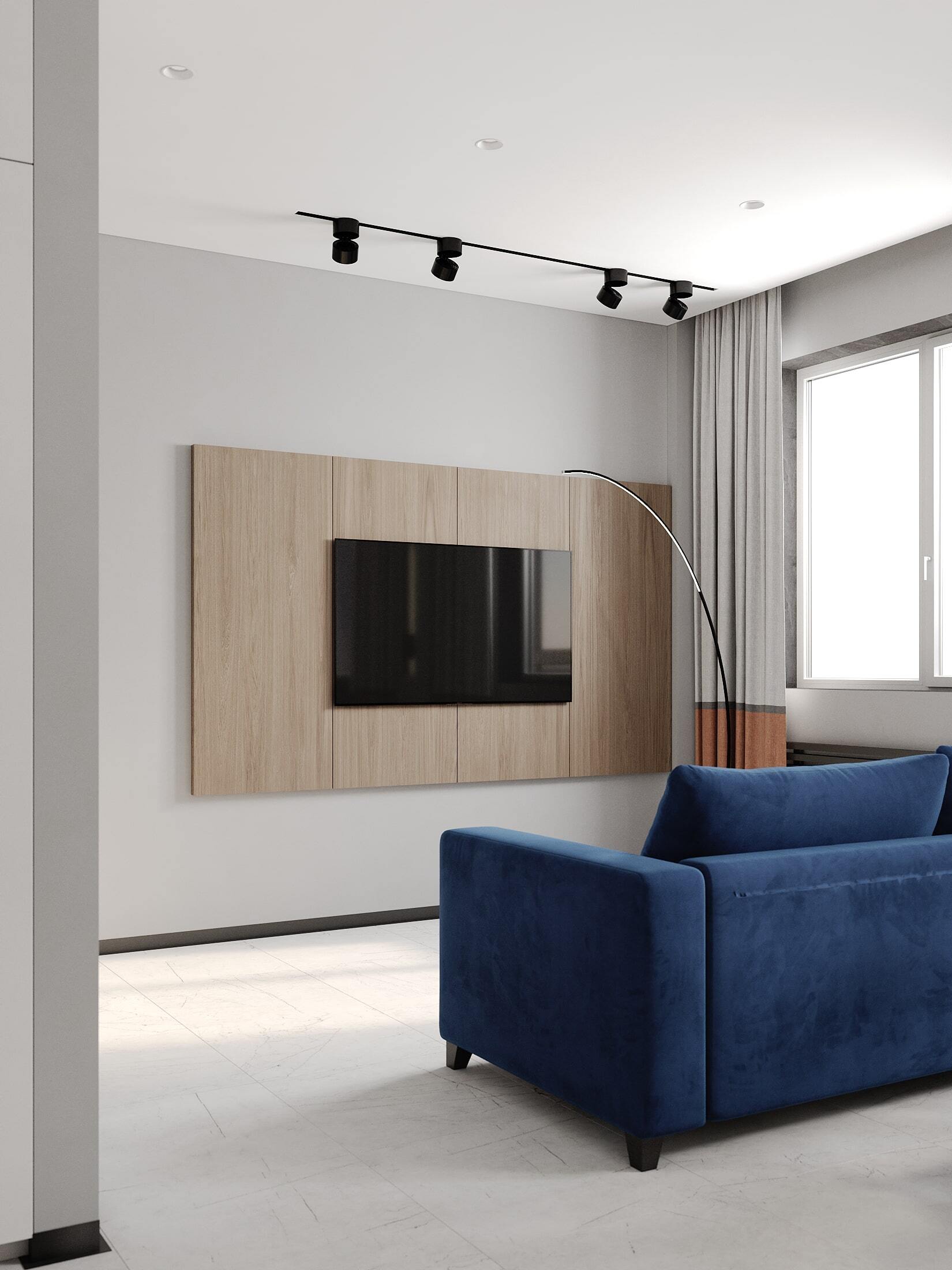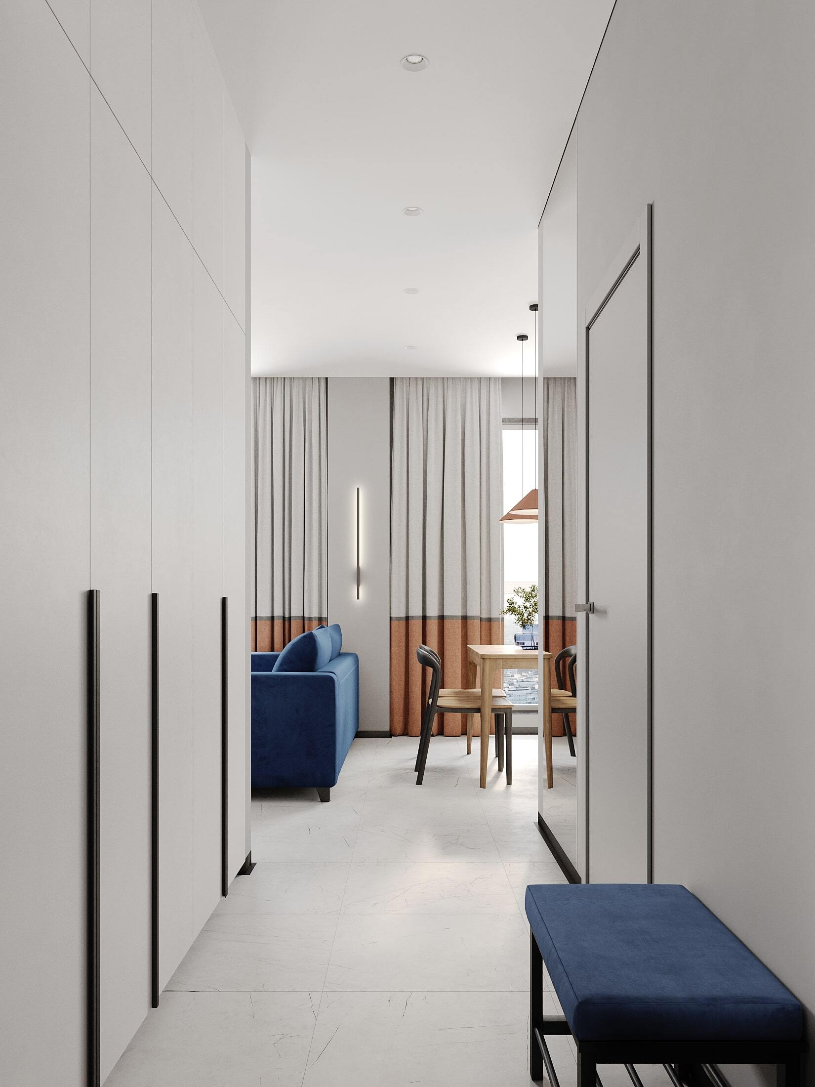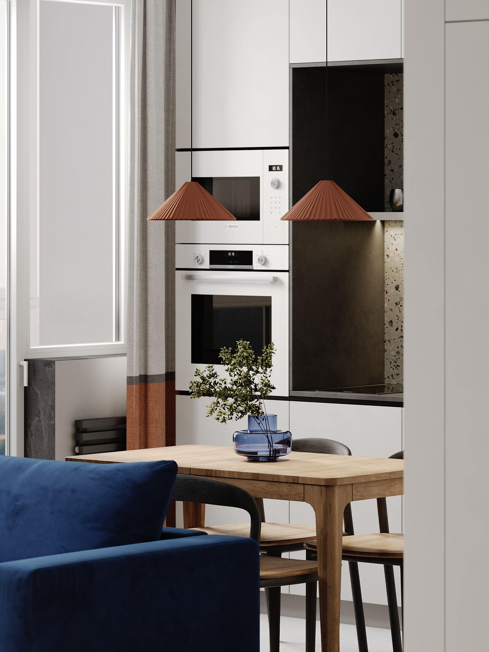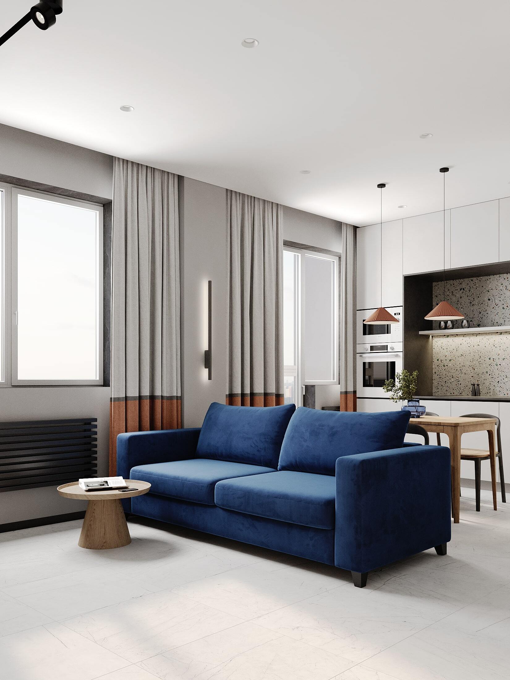 Единое пространство с удобным зонированием на кухню, гостиную, спальню и прихожую. Интерьер, настраивающий на позитив, которого порой так не хватает.