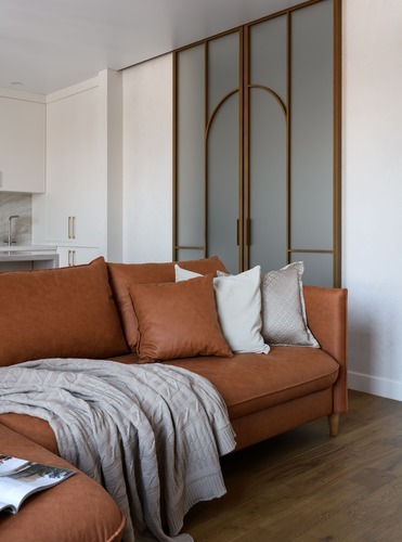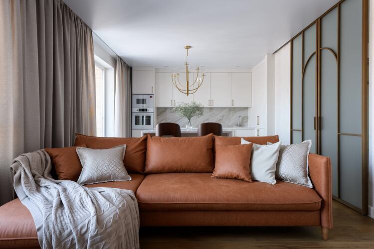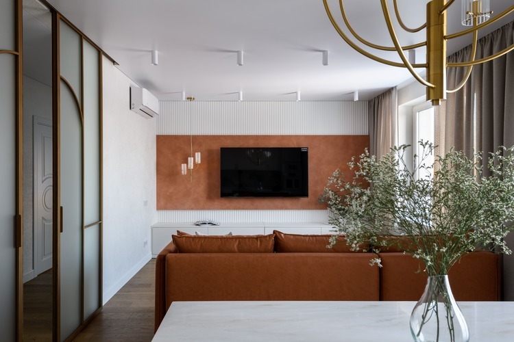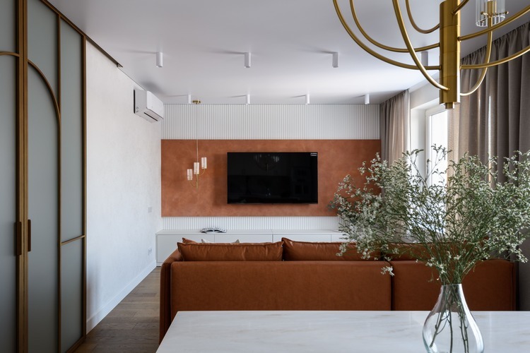 Сдержанная, изысканная с естественными цветами, вдохновленными природой – терракота, зеленый и молочный.