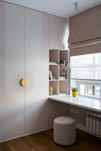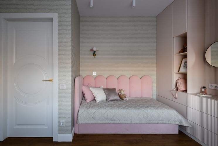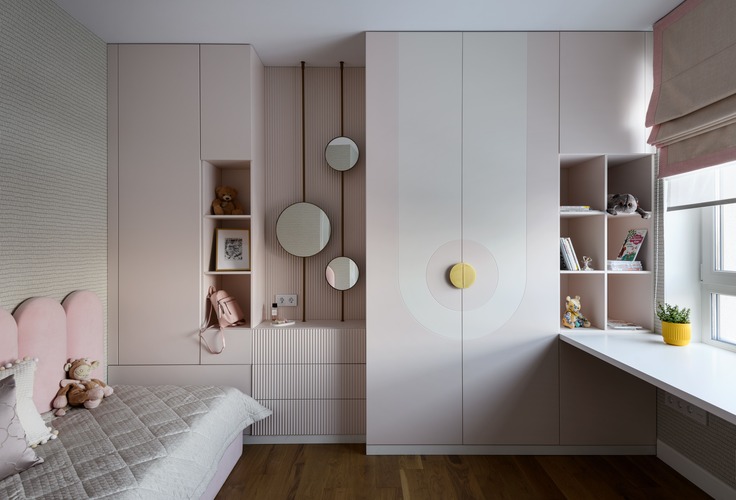 Детская для настоящей принцессы в нежных оттенках пыльной розы и молочного, продуманная и эргономичная.