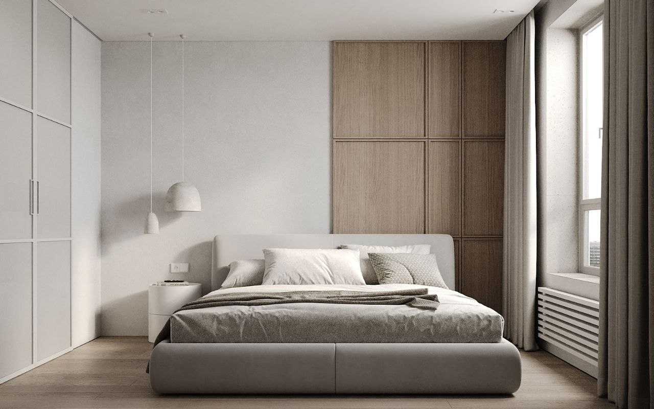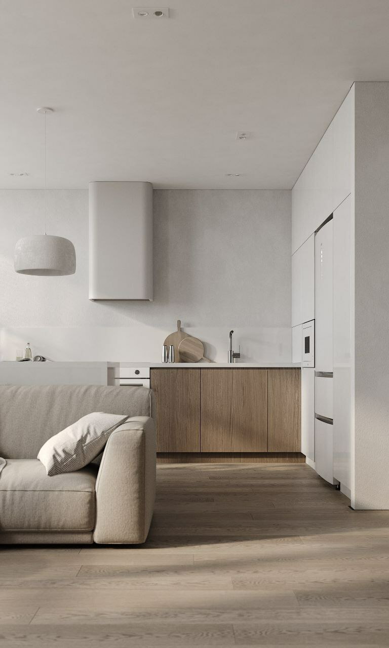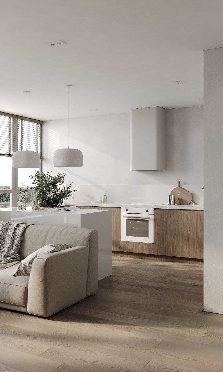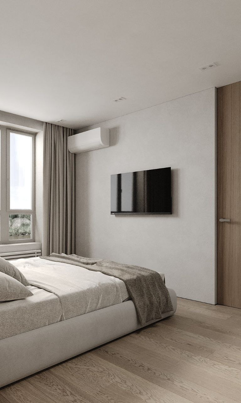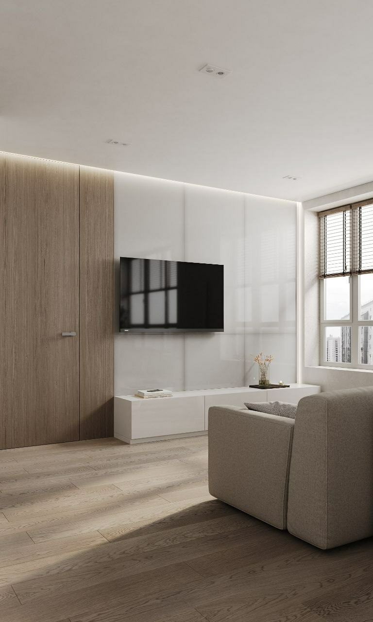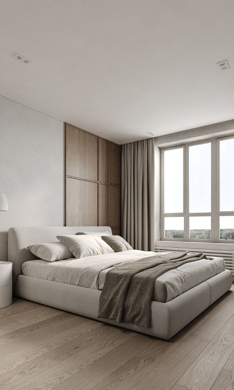 Софт минимализм в сочетании с идеальной планировкой и красивым видом из окна на склон с руслом реки.