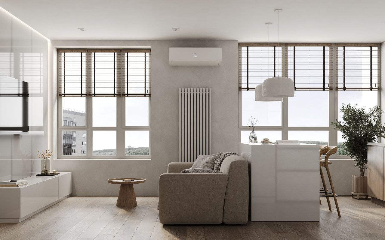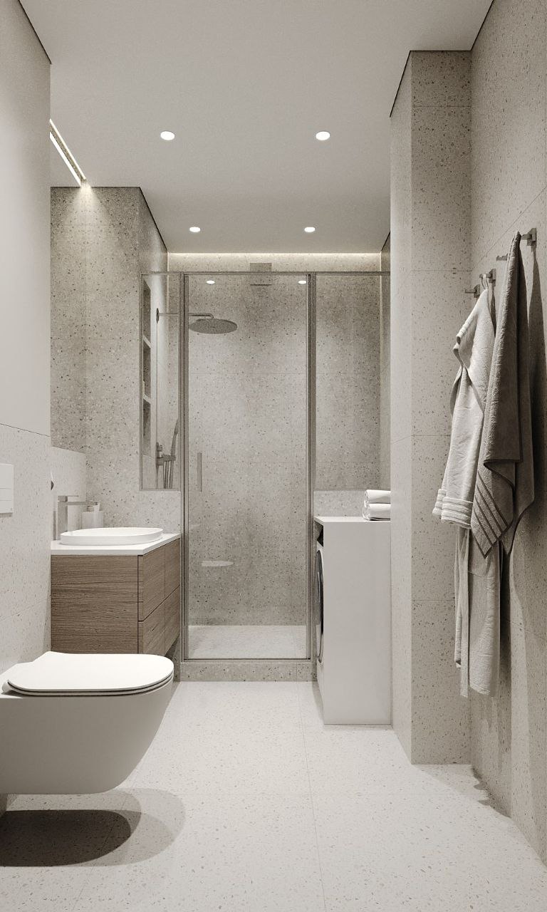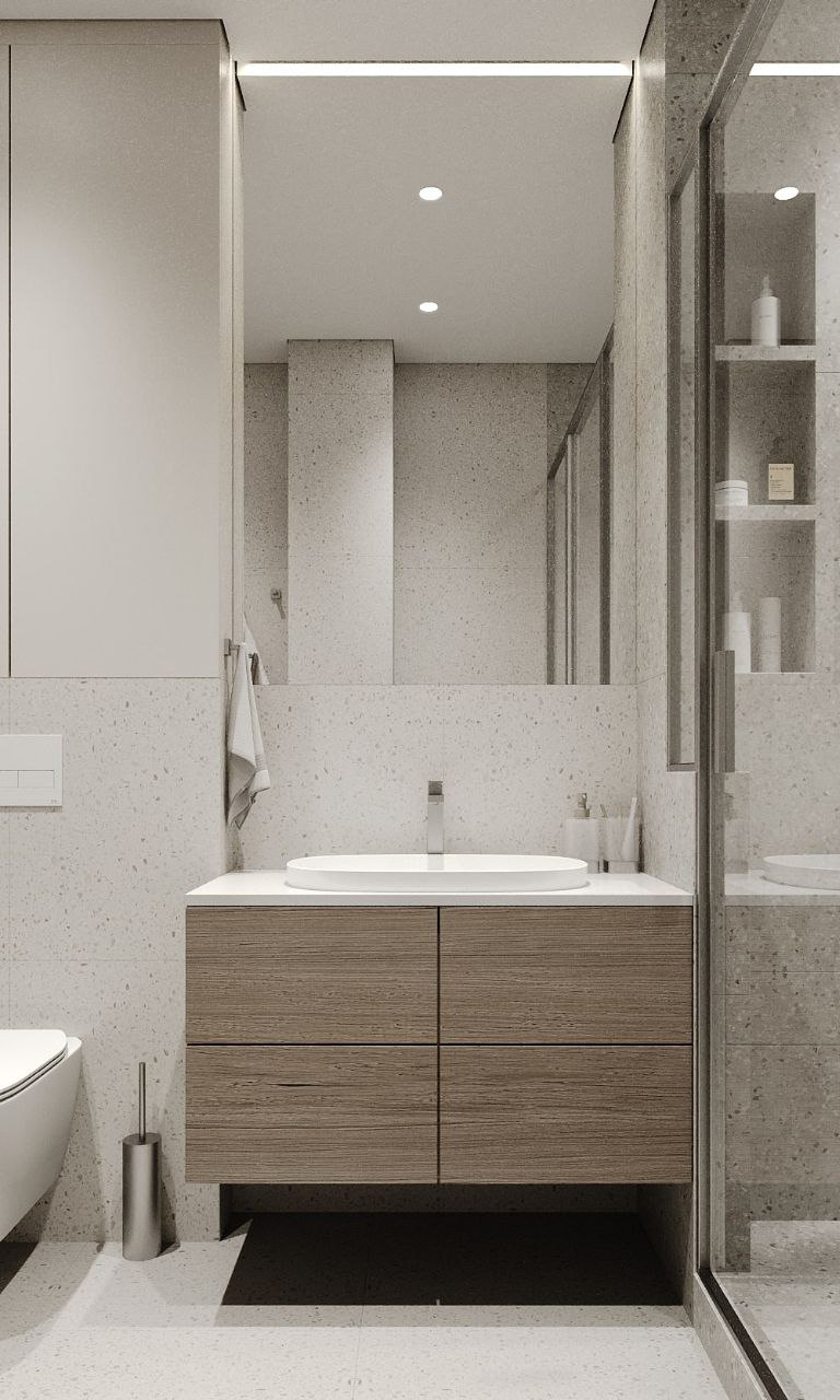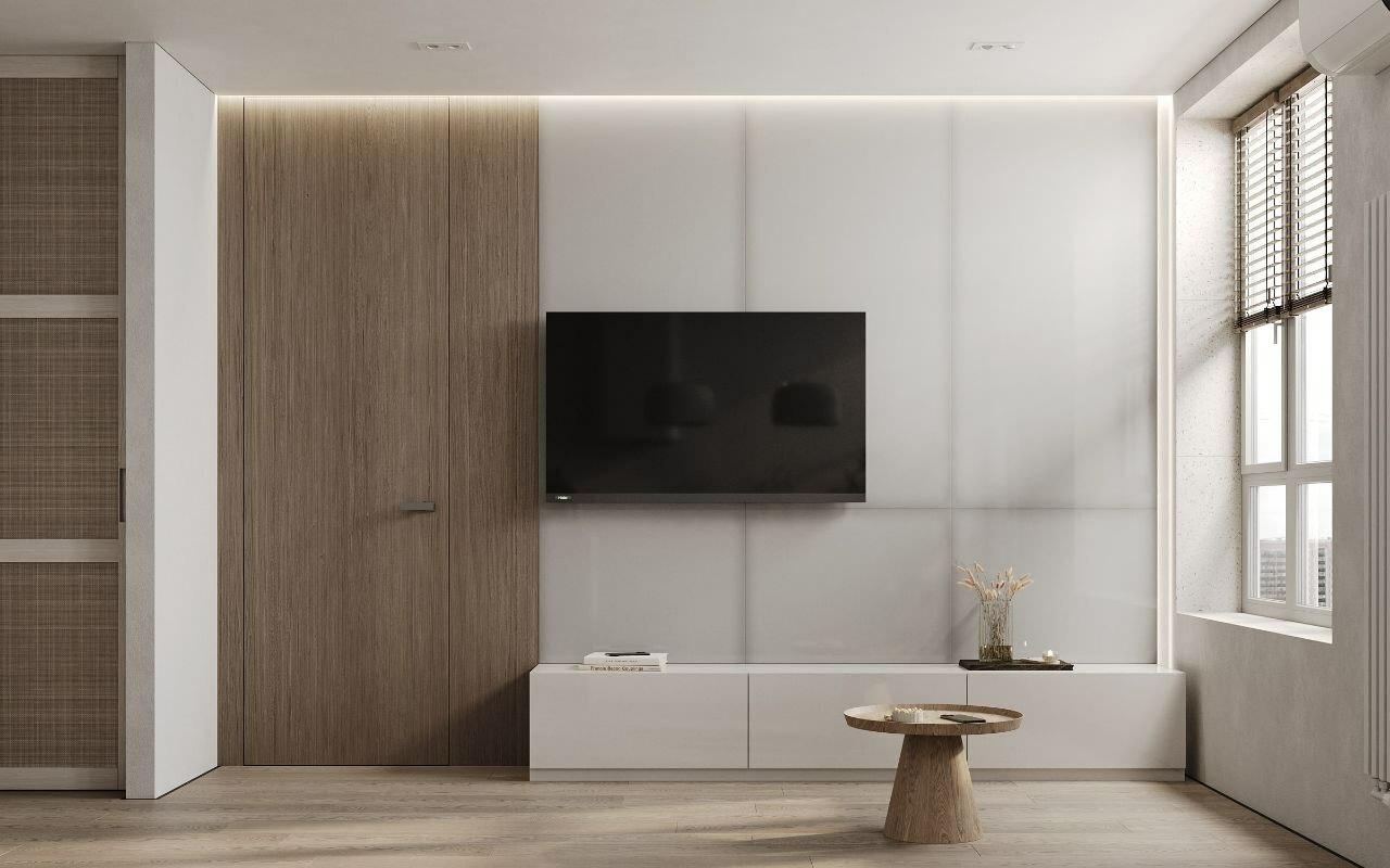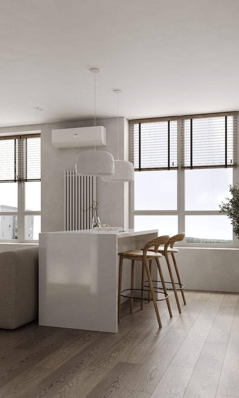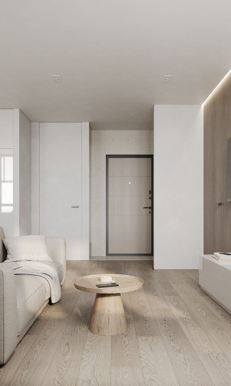 Софт минимализм в сочетании с идеальной планировкой и красивым видом из окна на склон с руслом реки.